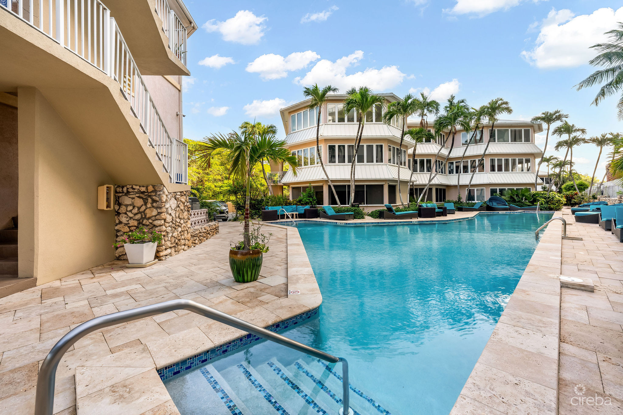The well-maintained complex offers a large outdoor pool, beach-side lounging areas, and inviting shared spaces for gathering or unwinding. An added lifestyle perk is access to the neighbouring Grand Hyatt Cayman Islands’ amenities, including a gym, spa, and resort-style pool.